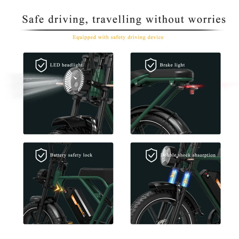 | Motor type | 48 V high-speed brushless motor with 20-inch wheels |